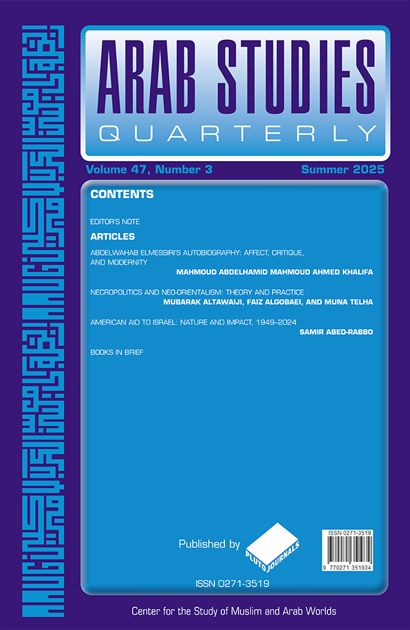 Arab Studies Quarterly (ASQ) was established in 1979 by the late Professors Edward Said and Ibrahim Abu-Lughod. They envisioned the Journal to be a platform for academic research to counter anti-Arab propaganda veiled by academic jargon. Since its inception, ASQ has been a refereed academic journal that publishes articles on the Arabs, their history and social and political institutions.